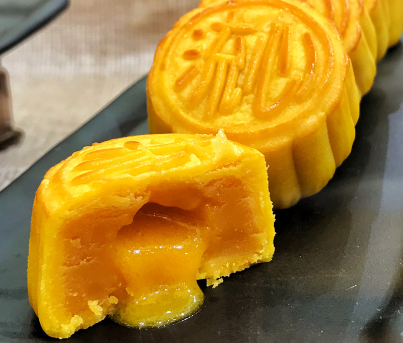 成鴨蛋黃:選用洞庭湖出產(chǎn)的新鮮鴨蛋,通過四十多天的精制,蛋黃色澤油潤。用“烘生黃”這一先進(jìn)工藝而制作出來的月餅,蛋黃成熟后油潤、松化,蛋黃的醇香、蓮蓉的清香交融,相得益彰。